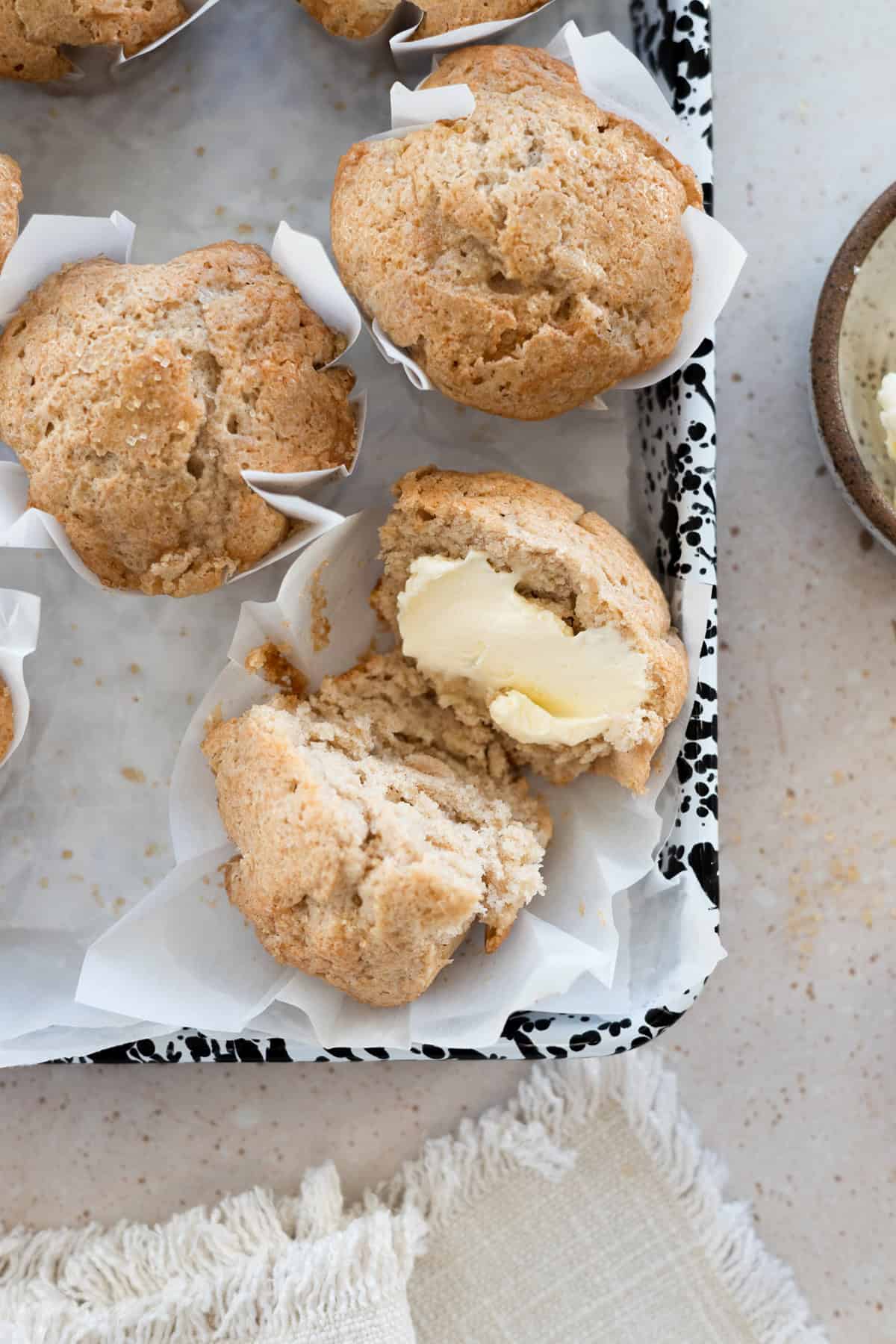 - Let the muffins cool for a few minutes before serving - this will make it easier to cut them in half and spread with butter or other toppings.